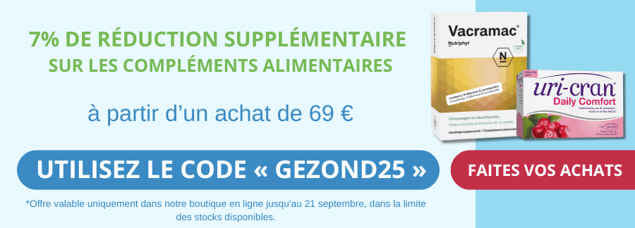 • Pharmacie belge autorisée • Remises importantes • Livraison gratuite à partir de 29 € en Belgique • Commandé un jour ouvrable avant 15h, livré le prochain jour ouvrable !